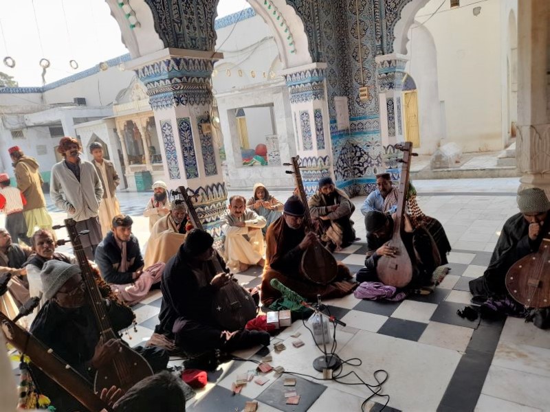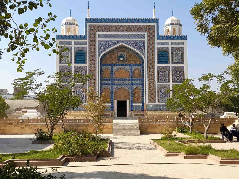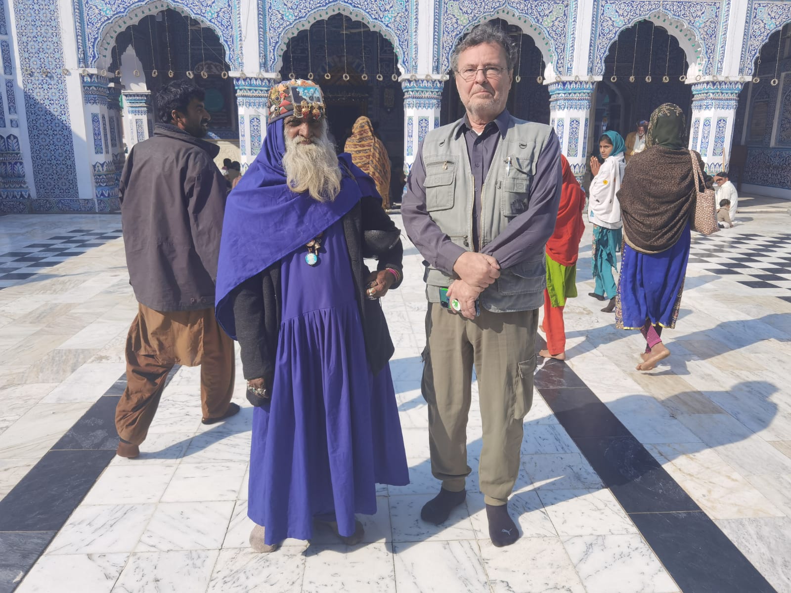 | 12. Januar 2024 Unterwegs Auf der Fahrt nach Sukkur, Stopp in Bhit Shah, einer kleinen Stadt im Taluka Hala Bezirk Matiari. Hier besuchten wir das Mausoleum vom Sufi-Dichter Shah Abdul Latif. |
